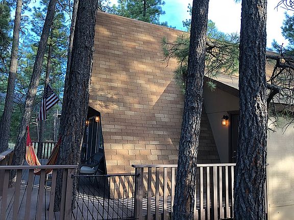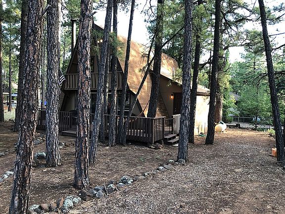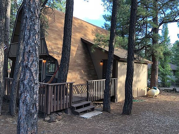 Sought after Munds Park cabin, perfect for weekend getaways! Easily accessible from the I-17 freeway. Trail riding is just feet away from your doorstep! This cozy cabin has a fresh coat of paint inside and out, new flooring downstairs, plenty of closet and storage space, and new kitchen appliances. It has a bedroom and bathroom downstairs, and a loft that looks down to the main living area. It also features a wrap around deck for relaxing and has plenty of shade from the big pine trees. It uses city water and sewer, and features in floor heating. Lots of memories to be made in this Munds Park cabin!