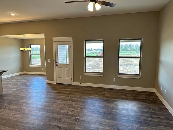 New 3 car garage split bedroom plan home with vinyl plank flooring in the kitchen and living areas, large kitchen island, granite countertops, walk-in pantry, raised ceilings, covered patio with a great view and landscaping. More new homes available in this subdivision.