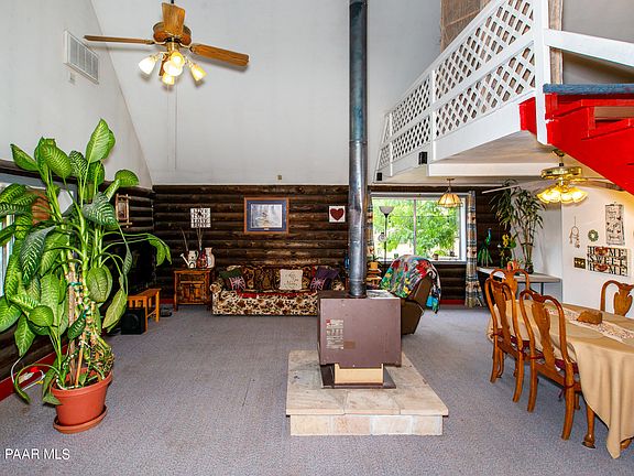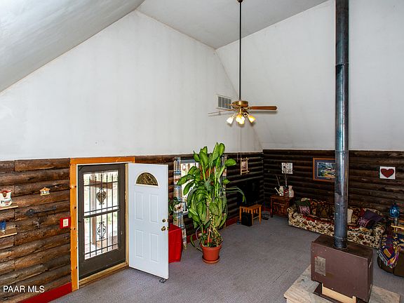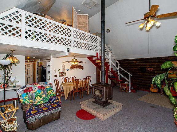 Take this cabin and make it yours! This cabin is an beautiful A frame style with beautiful logs all around the home, if you like the home you will LOVE the over 1/2 acre of mature trees and plants all around. Step into the home to a large open living room and lofted bedroom. Down stairs you will find a functional kitchen, full bathroom, living room, laundry, and Arizona room. Step upstairs and look down to the beautiful open living room, the lofted bedroom is large, open, and bright, with a toilet and sink. Outside has 2 large sheds for storage, drip system for all trees, quiet peaceful and beautiful. Put you r love and attention into this quaint beautiful cabin today!!