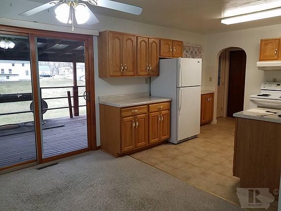 CHARMING RANCH STYLE HOME SITUATED ON ALMOST HALF AN ACRE IN SIGOURNEY! The main level features an open concept living/dining area, updated kitchen with beautiful oak cabinetry, 3 bedrooms, a full bathroom, and a covered deck, GREAT for entertaining, and an enclosed front porch. Lots of spacious closets and storage in this home! Home has nice vinyl siding and newer vinyl windows. The walk-out basement features a large family room complete with bar, a 3/4 bathroom, laundry room, and storage room. Just outside the basement is another covered patio area that overlooks the beautiful large backyard. Appliances included! Also features a large 24x30, two car detached garage. This home is a MUST see! Schedule a showing today!!!