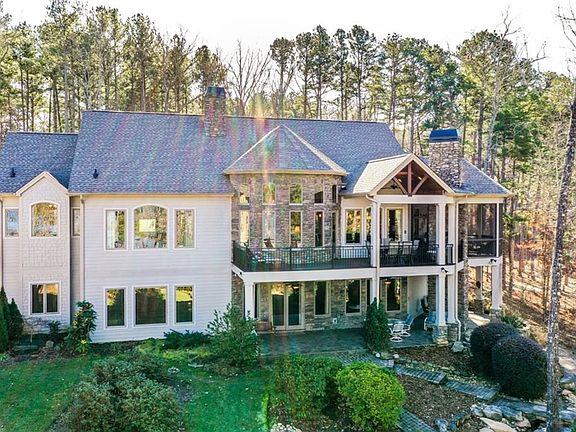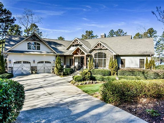 The owners of this "Rustic Elegance" custom home totally fell in love with this Waterside Crossing homesite in 2005 & then designed & built their Lake Keowee dream home! The gently sloped lot has a natural sand beach & mountain view with deep water at their hip & a half covered dock. A waterfall feature, meandering from the deck & terrace level patios to the shoreline, enhances the tranquil setting. This home captures the creativity of a well-designed interior, gently melding with the exquisite outdoor spaces. Living at this lake allows you to embrace outdoor living! The divided driveway, with its central island, is drenched with beauty from the azaleas, rhododendrons, blueberry bushes, and trees. The covered front porch, leading into the foyer, features a tongue-and-groove Ponderosa pine wood ceiling, solid cedar hand-hewn columns, and flagstone porch. The entryway is a custom 9' + tall, full-light glass door with sidelights and transom. The beamed, Ponderosa pine tongue-and-groove ceiling defines the Great room & soars 22 feet above the hand-scraped, solid hickory floors. The room is accented by a 16' Eldorado stone-faced fireplace, with raised hearth & custom mantel. The built-in entertainment center is rustic alder wood. The open concept kitchen & dining area contribute to easy entertaining, with just enough separation to subdue noises generated by cooking in the kitchen. The layout is perfect. Custom kitchen cherry cabinets are stained Nutmeg with a coffee glaze & accented in black trim. The central island is in Heirloom black on cherry wood. This kitchen is a gourmet cook's delight with a dual fuel Viking 36" Pro Range accented with Eldorado stone. The stainless steel range hood & liner are Broan Best, KitchenAid convection wall oven & microwave, Miele dishwasher, and SubZero 48 " Classic stainless steel built-in refrigerator with filtered ice and water through the door. The glazed porcelain tile adds to the beauty of the rooms. Granite counters, Kohler under-mount sink & Moen faucet complete the finishing touches. A large pantry is steps from your kitchen. The dining area is surrounded by windows looking out to Lake Keowee and opening into a screened-in porch with 2-sided stone fireplace. All exterior decking is Brazilian ironwood, with new wrought iron balusters and railing. The Master bedroom suite is what you would expect in this luxury waterfront home and adjacent to the master is a large executive office. The exceptional views of Lake Keowee are complimented by the tray ceiling, custom lighting, and huge, walk-in closet with built-in ironing board. The Master Bath Suite features a heated whirlpool tub, exceptional walk-in shower with Grohe fixtures including rain shower and multiple heads, porcelain tile floor, custom cabinets, granite counters, and decorative glass block. The main floor office or 5th bedroom features built-in cabinets, under cabinet lighting, and hand-scraped, solid hickory floors. The bonus room suite is ideal for your guests and features a private, full bath with porcelain tile floor, custom cabinet, and granite counter. The main level laundry room includes the 2-year old Electrolux washer and dryer. The terrace level is ideal for your family and guests. You have the perfect indoor and outdoor living spaces. The terrace level recreation room is terrific. The stacked-stone fireplace anchors the beautiful, custom built-in cabinets. A wet bar allows you to serve your guests their favorite beverages. It is equipped with a Moenstone under-counter sink, icemaker, microwave, & refrigerator. There are two bedroom en-suites, an exercise room, and powder room. The "Mud Room" on the lower level allows guests to walk into your home wet and drop wet towels & swimsuits in the washer and dryer in the 2nd laundry room. The expansive porcelain tiled patio wraps around the lakeside side of the house to the mudroom. There are 3 unfinished areas, a New Rinnai water heater & the home is "Elevator Ready"!