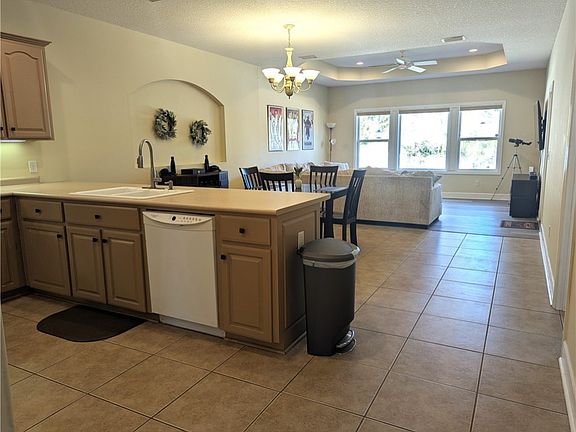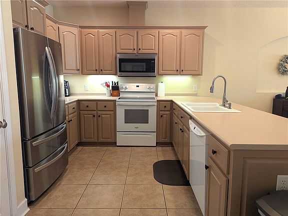 New Roof is negotiable depending on Offer on this wonderful 2br/2ba single family attached home located on a 0.11 acre lot. Interior has tiled and laminate flooring throughout no carpeting. The open floor plan of the kitchen, dining and great rooms have a large breakfast counter top, wall alcove, recessed lighting and a tray ceiling. The kitchen has a new french door stainless steel refrigerator with in door water and ice-maker, additional exterior temperature controlled drawer, range/oven with solid surface cook-top above stove microwave and pantry. Owner Retreat bedroom has a vaulted ceiling and a large walk-in closet with a private bath. The private bath boasts a whirlpool tub, separate tiled travertine tiled shower and double vanity. Front bedroom also has a vaulted ceiling, Additional double linen closet in the foyer for the guest bedroom. The inside laundry room leads to the finished garage with T111 siding on the walls for easy hanging and storage. There is an additional storage area that houses the water softener and hot water heater with shelving. The attic has a large area for storage that is floored and accessed by the pull down stair in the garage.