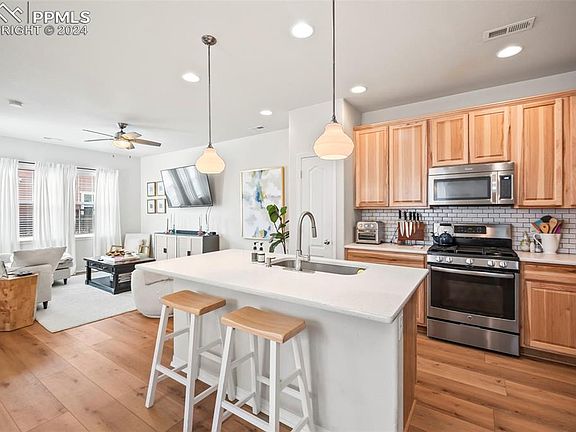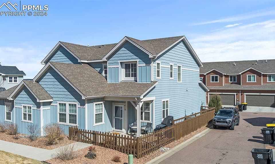 Outstanding End Unit townhome in the popular neighborhood of Gold Hill Mesa, known for its desirable location and scenic views. The front yard is extended and fenced in, offering a great space for relaxing and chatting with neighbors. Inside, this home boasts an upgraded gourmet kitchen with modern stainless steel appliances, a gas range and quartz countertops. The kitchen also features elegant wood floors that bring warmth and character to the space. Upstairs find a spacious primary bedroom with a walk-in closet and an adjoining bathroom. The primary bathroom features a generously sized shower. and duel sinks. Two additional bedrooms offer space for guests, family, or a home office. The laundry room is conveniently located on the second level for easy access and practicality. Gold Hill Mesa is a fantastic neighborhood that offers a perfect balance of convenience, community, and natural beauty. Its proximity to major transportation routes, local attractions, and Fort Carson make it an ideal place to live for those seeking a desirable and welcoming neighborhood in Colorado Springs. With its attractive location, modern upgrades, and spacious layout, this townhome in Gold Hill Mesa is an ideal home for those seeking comfort, style, and convenience. Don't miss this gem!!!