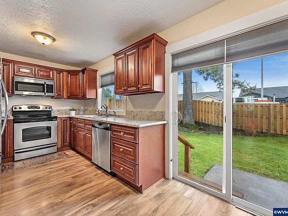 Immaculate, move-in-ready single-level on generous .23-acre lot. 2012 remodel included flooring, paint, fixtures & appliances. Exterior updates included new roof, fiber cement siding, paint & vinyl windows. Kitchen w/granite counters, stainless appliances & cherry cabinetry. Easy care laminate floors grace the main living spaces. Large primary suite w/walk-in closet. Energy-efficient ductless heat pump/AC. Fenced backyard w/raised beds & mature landscaping. 3rd bedroom or office features utility in closet.