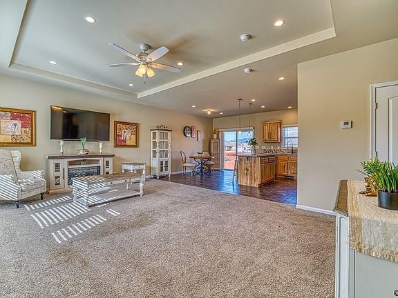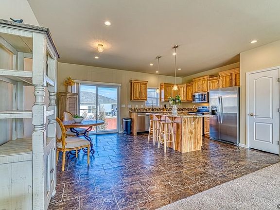 What a bright and cheery home that still smells like brand new! Immaculately cared for home with open floor plan and cathedral ceilings and custom trey ceiling features. Beautiful kitchen with soft closing Hickory cabinets, granite counter tops, a pantry, breakfast bar, and big island! Large 3.5 foot hallways, custom 2 panel doors, and a master suite with trey ceilings, and a 5 piece master bathroom including a walk-in shower and walk in closet. Great landscaping with drip system, garden beds, and fenced yard. New and paid for solar system for very low cost electric bills.