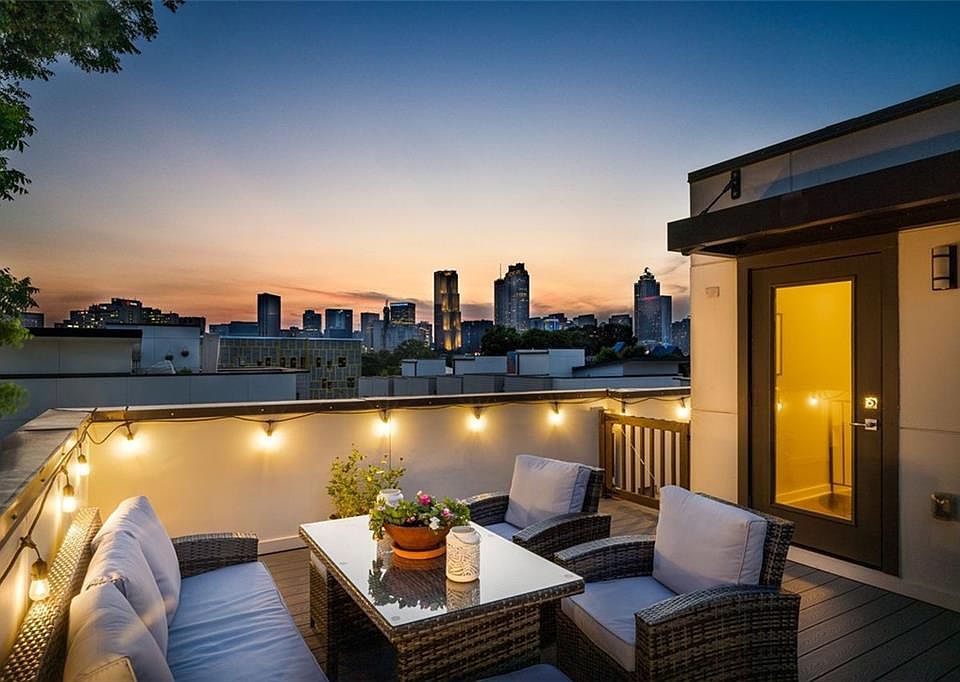 Welcome to 415Stacks, where modern luxury and urban living blend seamlessly! This stunning end unit townhome boasts an abundance of natural light that floods every corner of its open-concept layout, creating a warm and inviting ambiance throughout. Hosting friends and family is a breeze in the expansive living and dining space that is built for entertaining. The chef of the home will love the thought fully updated kitchen with custom backsplash, large island, dedicated pantry and Stainless-Steel appliances. Sneak outdoors for an after-dinner drink on the Juliet balcony and then head upstairs to your primary retreat with dual closets and en-suite bath with dual vanity sink and glass-enclosed tile shower. The secondary bedroom offers a walk-in closet and en-suite bath. Pause to appreciate the curved walls in the hallway surrounding the spiral staircase taking you to the rooftop, a true highlight of this home. Step outside and be captivated by the breathtaking views of the vibrant Atlanta city skyline from your private rooftop patio where you’ll find yourself sneaking away for morning coffee, afternoon naps and evening gatherings around the grill. Need a third bedroom or work from home office, you’ll love the flex room on the lower level with sliding barn doors and large closet. Don’t overlook the 1-car garage with built-in storage and separate exterior door. In an unbeatable location in Old Fourth Ward, this quiet townhome community, whose rental cap has not been met, is a quick walk or bike ride to all of your favorite local destinations including Chrome Yellow, Fetch, Bigger Staff Brewing, Joy Stick, Church, King Memorial Transit Station and so much more!