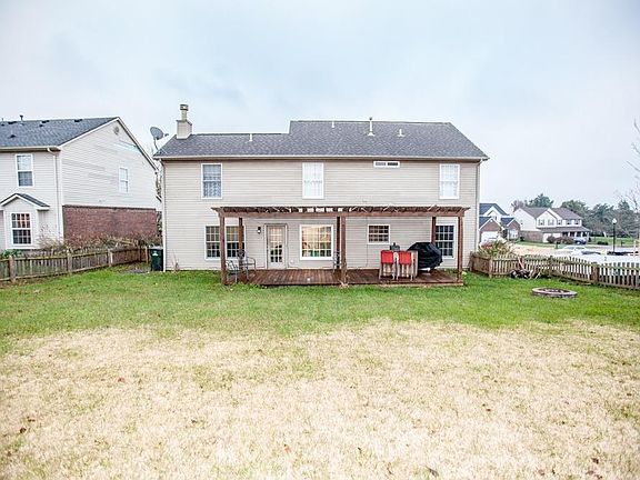 This classically styled 4BR/2.5BA home sits on the 18th fairway of the golf course and is within easy walking distance to the neighborhood pool and the clubhouse where you can enjoy dinner and cocktails. The first floor features NEW easy to care for laminate flooring throughout. Enjoy winter nights in front of the gas log fireplace in the family room that is open to the kitchen. The kitchen features stainless steel appliances, glass tile backsplash, and pantry. Dine at the breakfast bar or move to the formal dining room for larger gatherings. The vaulted master suite boasts a dual sink vanity and jetted tub. 3 large guest rooms, one with built-in desk, full guest bath, & laundry room are also on this floor. Huge walk-in attic space is a real bonus! You're sure to love the pergola over the back deck in the fully fenced yard. Call today to schedule your private showing.