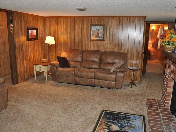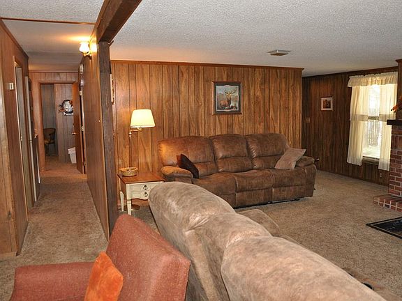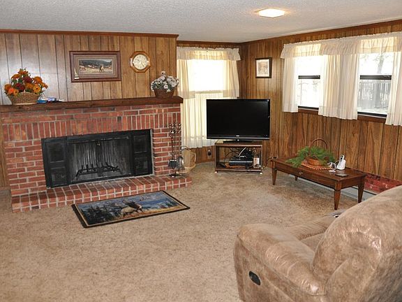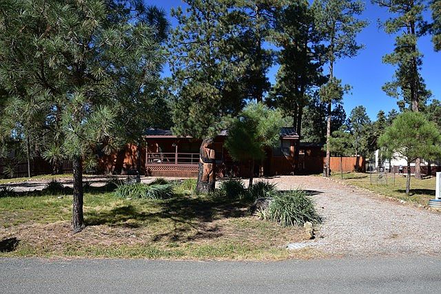 Easy access to this home that sits on a level lot. Three bedrooms, two baths. It is a manufactured single wide with an added on den, bedroom, bathroom and the kitchen was extended. 1,510 square feet. Metal roof on in 2011. Privacy fenced back yard, Large front porch and two smaller back porches. Metal roof. Large circular driveway. Plenty of room for parking and to add a double car garage if you like. Front of home had new windows put in 2012. Fully furnished. Lots of large trees on this lot. Forestry compliant. Large wood burning fireplace. Great location. Close to walking trail and schools. Washer and dryer stay. Three carved bears in the yard. Priced at $99 a square foot. Lock box. Go.