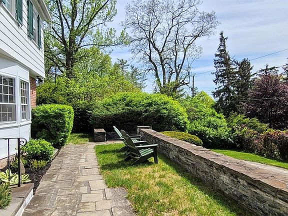 Classic center hall 1934 Colonial nestled in the heart of Cayuga Heights, 1 block to elementary school and a short distance to Cornell campus. Lovely home with modern updates and classic charm. Step back in time with vintage woodwork, built-ins, graceful staircase, hardwood floors, 3 fireplaces, garden waterfall and beautiful stone walls and walkways. Gourmet cherry kitchen highlighted by granite counters, wood floors, Viking stove and breakfast nook. Bright formal dining room includes wainscoting, more built-ins and endless natural wood. Off the spacious living room, with its ornate wood burning fireplace and rich woodwork, sits a private 3 seasons sunroom to escape the day. Primary suite with bath plus a guest suite with private bath and separate staircase to the main floor. Lower-level family room for more space. Beautiful home office with natural wood, fireplace and built-ins. Sprawling fenced in yard, stone patio, mature plantings, 3 car garage, covered porch, attic storage, more!
