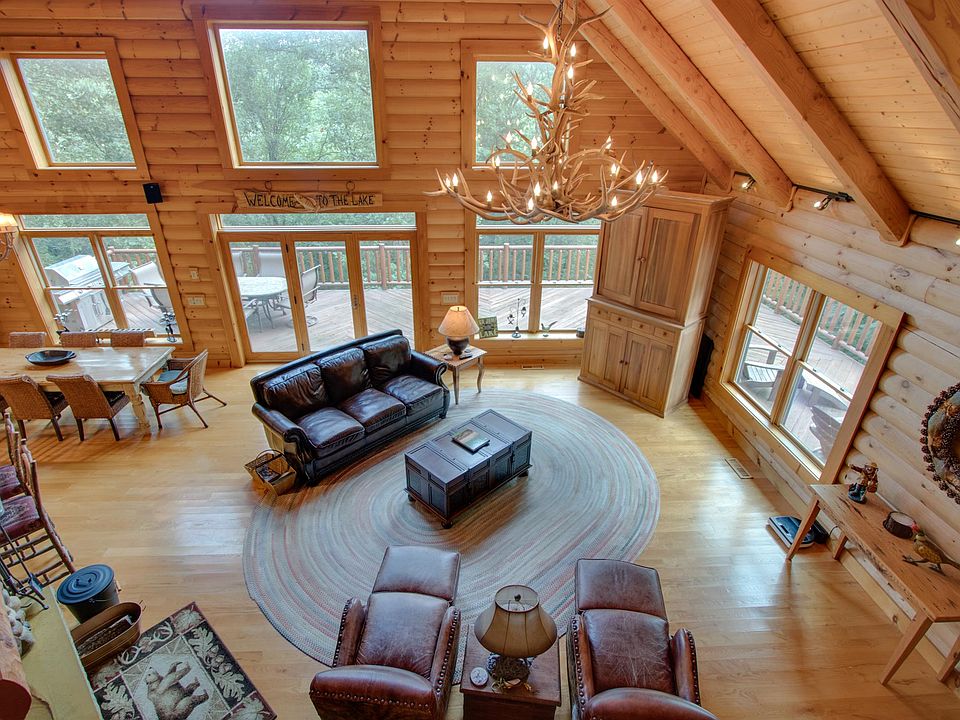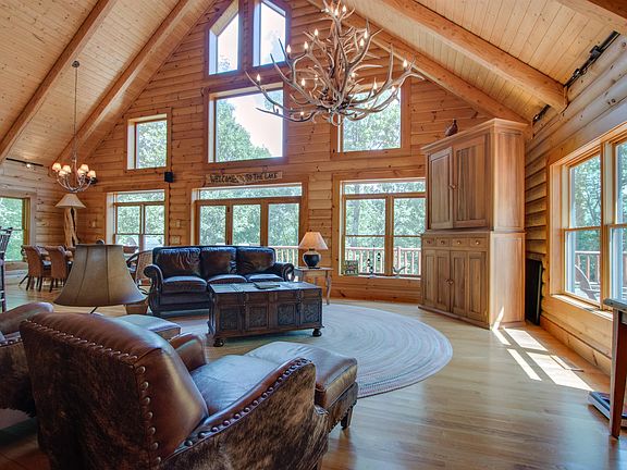 GORGEOUS, Gated, CENTER HILL lake home! Live here full time or enjoy weekends and free time. Open, vaulted ceiling living area with 2 story stone fireplace. Bring the whole crowd to dinner in this large dining area PLUS seat some on the deck or around the counter. Main floor Owners BR with bath suite; 2 BR, full bath & loft upstairs with stone fireplace; 2 BR, living area & full bath in basement. Coveted 2 wrap around porches. Garage. Every detail of your lakehouse dream come true!