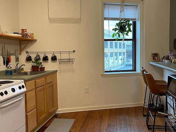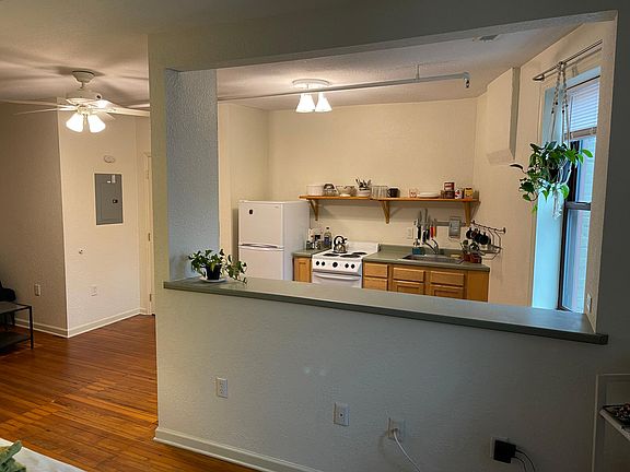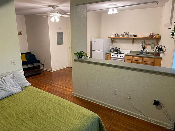 Studio layout apartment. Unit is approx 350sf. Bathroom has a shower only ( no tub). Located above Harvest Records in West Asheville. Centrally located on Haywood road, clean, well maintained and in a great building. Central heat / AC Hardwood Floors Approved Application and security deposit required. No smoking / no pets. Water is included. Tenant pays other utilities. If you are seeking a quiet place with a yard, need not apply.