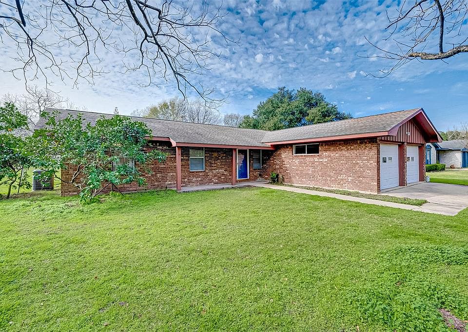 415 Hereford Drive is a lovely one-story home located in Brookshire, TX. This 3 bedroom home sits on a large corner lot with mature trees. The updated kitchen features Granite countertops paired w/ subway tile backsplash and large undermount sink. Two car attached garage. The refrigerator, washer & dryer will remain with the home. The home features fresh gray paint and recent laminate wood-look flooring. The spacious master bedroom has an en-suite bath with Granite and undermount sink. The backyard is absolutely MASSIVE and has tons of potential for a garden, pool or playset! The red barn shed will remain with the home. Royal School District. Close to I-10's industrial development, Katy Mills Mall and much more!