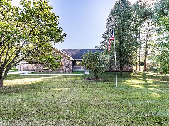Beautiful 3 Bed, 2 Bath Solid Brick Ranch by Stafford Builders. This well-crafted home features signature details like intricate brickwork, custom window moldings, and a built-in home address. Enjoy your mornings in the cozy sunroom, perfect for coffee or tea. The spacious living room boasts a vaulted ceiling and a stunning brick gas fireplace, creating a warm and inviting atmosphere.The eat-in kitchen has been updated with new flooring, modern lighting, and a new range hood. The primary bedroom offers a raised ceiling and an en-suite bathroom with solid surface countertops and oil-rubbed bronze fixtures. Solid wood doors and vinyl windows with wood frames add to the home's charm and durability. Outside, you'll find a large backyard (.68 of an acre) with a brand-new privacy fence and two storage sheds. The home is connected to Painted Hills Water and is conveniently located just off IN-44, on the East side of Interstate 69, offering easy access to nearby amenities and travel routes.