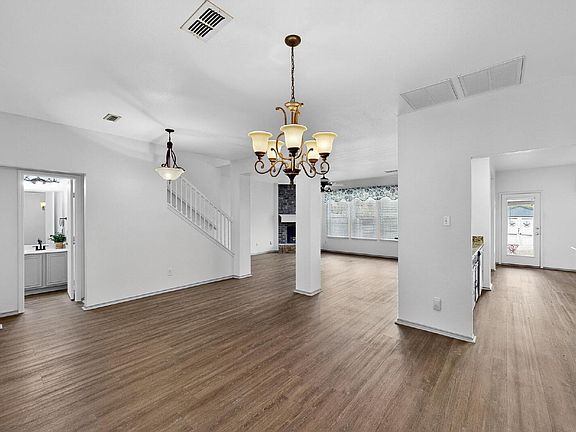 Stunning two-story brick homePlush new carpetLarge covered patioWood-look flooringOverlooking the backyardFresh upstairs paintGranite kitchen countertops