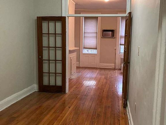 2 bedroom railroad style apartment located in Williamsburg Beautiful French like doors leading to the second room Hardwood floors throughout Close to shopping and transportation Close to the piers Heat and hot water included No pets please