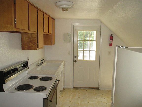 Here is an opportunity to own an investment property!. Main floor has 2 bedrooms, living room, eat in kitchen and full bath. Upstairs apartment has 1 bedroom,living room, eat in kitchen and bath with an outside stairway for private entry. Property being sold "As Is".