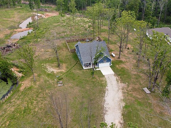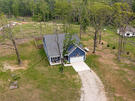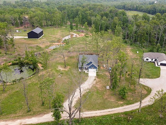 Stunning, well-appointed home on 3 acres exudes quality construction and impeccable design! Boasting 3 Bedrooms, 2 Baths and just over 1,500 square feet, this piece of paradise also features its own stocked pond! Rich engineered hardwood floors flow throughout the living areas and bedrooms, with modern tile in the baths. Wide open kitchen and family room feature expansive panoramic views of the property. The kitchen, a bright and lively blue, showcases gorgeous marble countertops, punctuated by stainless appliances and a Thor gas stove for the chef of the family! Primary bedroom looks out over the property through multiple windows, and en suite bath contains a custom vanity and huge walk-in closet. Secondary bedrooms are spacious and share a clean, modern bath. Just outside, the covered back porch will be a favorite spot for morning coffee, social gatherings or a good book. In the corner of the fenced yard, a sauna (that STAYS!) only adds to the allure of this pristine property. It won't last long ... located in a very desirable area, just 30 minutes from Springfield. See it today!