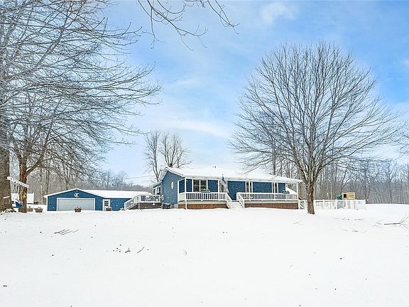 Welcome to this spacious 4-bedroom, 3 full bathroom home offering approximately 2,000 square feet of living space, plus an additional 462 square feet of finished basement. Designed with family living in mind, this home provides plenty of room to grow both inside and out. The vaulted dining ceiling creates an open, inviting space perfect for family meals and gatherings. Recent updates including roof, siding, furnace, air conditioning, hot water tank, and a newly drilled well provide peace of mind for future owners. All appliances are included for added convenience. Outside, enjoy an in-ground pool and scenic pond for relaxation and outdoor fun. A 4-car detached garage plus an integral attached garage offer ample storage. Set back off the road with over 2 acres, the property offers privacy and minimal traffic, creating a safe and peaceful setting for family life.
