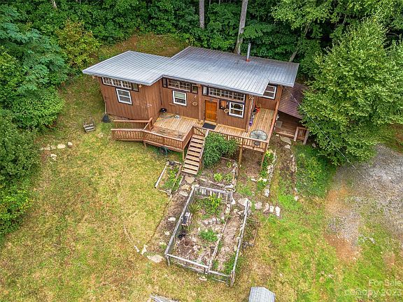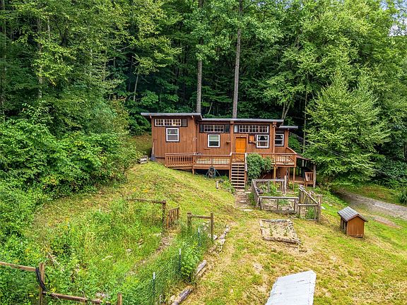 Dreamy Gerton homestead ready for a new owner! This quaint two-story passive-solar cottage sits tucked away in the shadow of Bear Wallow Mtn- less than 10 minutes from the trailhead! The home features a primary suite, kitchen, living room, and bathroom on the upper floor and an additional bedroom in the walkout basement. The 2.76 acre tract offers cleared pasture area with garden beds, outbuilding, and a healthy mix of standing timber. Up on the hill in the edge of the forest, you will find a camping platform that used to house a full-sized yurt. Owners have upgraded many aspects of the property throughout the years- New roof in 2017, bathroom renovation in 2018, new deck in 2021 to name a few! Minutes from local favorites like Hickory Nut Gap Farm and Florence Nature Preserve. Feel the privacy of rural Appalachia while only being 30 minutes from everything downtown Asheville has to offer.