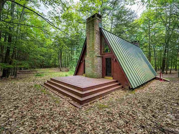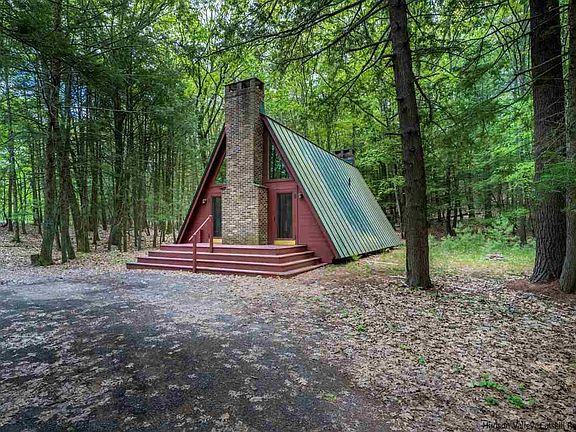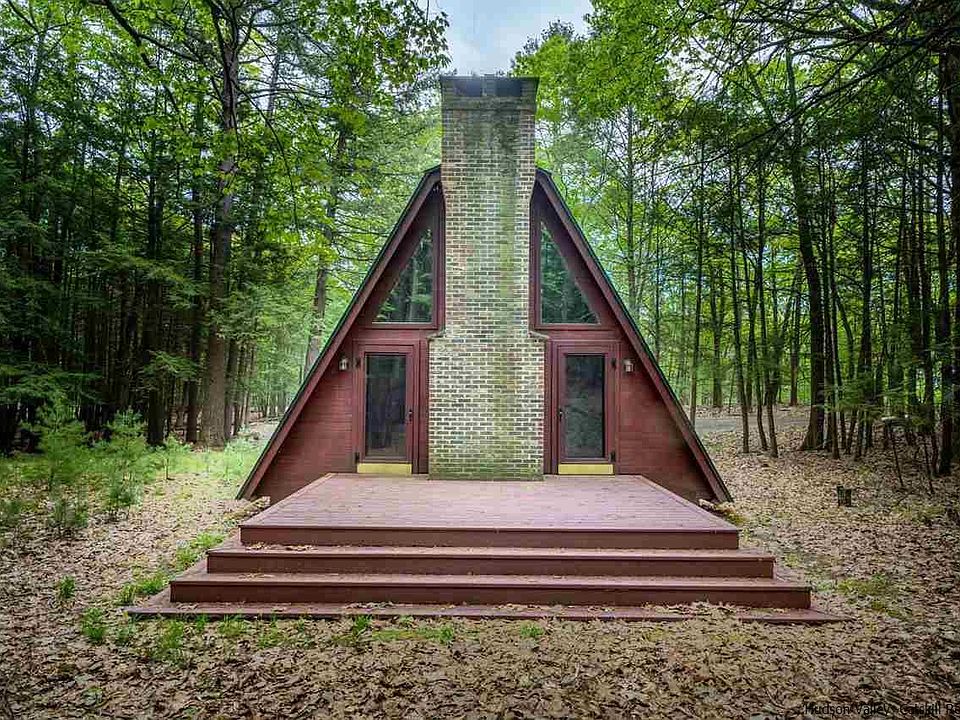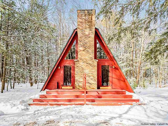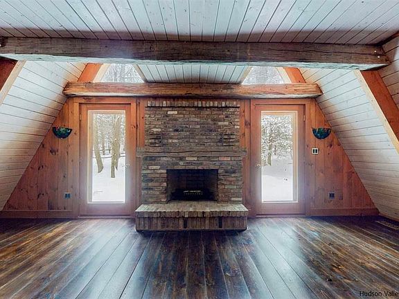 Snuggle up next to one of the two roaring cozy fireplaces. You will love this quaint rustic A-Frame home. Tall ceilings with rustic wooden barn beams. Beautiful hardwood floors throughout. The master bedroom is located on the main floor along with the half bath. Large open deck off the master bedroom. Gorgeous unique red claw soaking tub in the master bathroom. This home provides a blank canvas awaiting the next owner to their own style. This is a great weekend home or for someone that enjoys simplicity. On a sought-out country road in a central location close to Kingston, Woodstock, or Saugerties. Enjoy the many attractions this area has to offer which include, skiing hiking, fishing restaurants, shopping and much more. Located near the new Ashokan Rail Trail which offers stunning mountain and reservoir views. This unique home has so much to offer.