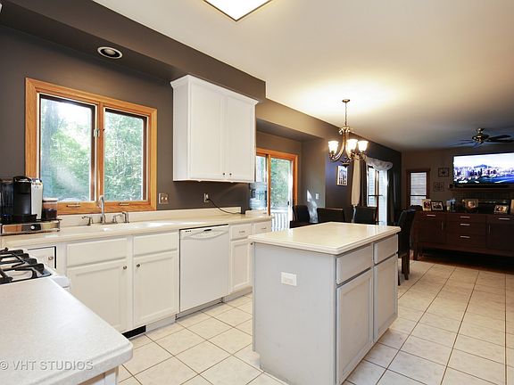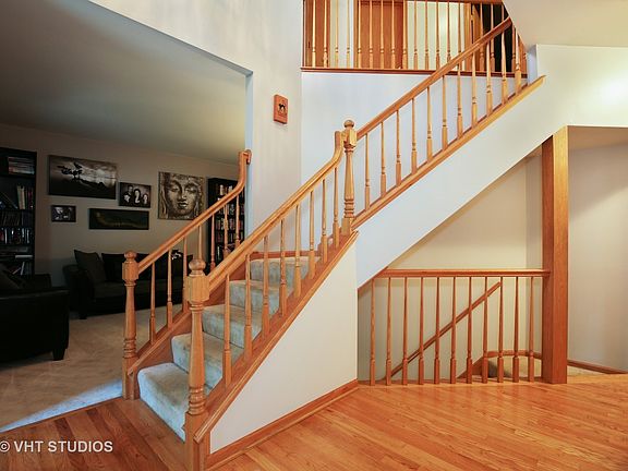 Beautiful development nestled among trees! Gorgeous curb appeal and stunning location are only the beginning! A two story foyer and open staircase greet you. This lovely home offers four generously sized bedrooms. Additionally, enjoy the convenience of two full baths, and one half bath. The basement is plumbed for an additional bath! The kitchen is light, bright, and has plenty of space! Corian counters and convenient island are only two features that make this kitchen so lovely. On one side of the kitchen is the formal dining room; on the other side is a spacious family room complete with hardwood floors and cozy fireplace. Other rooms on the first floor include a formal living space and a den. Enjoy your morning coffee on your front porch or private deck. This "smart" house offers many amenities for your convenience and comfort. Award wining Prairie Grove schools. See this one today!