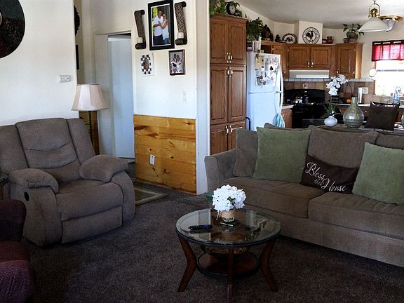 Welcome to your dream home on a large corner lot! This charming double wide manufactured home offers the perfect blend of comfort, style, and space, with 3 bedrooms and 2 full baths to accommodate your family's needs. Step inside and be greeted by a cozy and inviting living area, where you'll find brand new carpet that was installed just last year, providing a soft and fresh feel underfoot. The open layout seamlessly connects the living room to the eat-in kitchen, making it a breeze to entertain guests or spend quality time with loved ones while preparing meals. The kitchen itself is a true delight, boasting modern amenities and storage space. Whether you're a seasoned chef or just love to cook for fun, this well-appointed kitchen is sure to inspire your culinary adventures. Escape to the master suite, your personal sanctuary. Pamper yourself in the luxurious soaker tub, perfect for unwinding after a long day. With updated bathrooms throughout the home, you can enjoy modern conveniences and sleek design. Ready to entertain? Step outside to your very own private oasis. The backyard is fully enclosed by a privacy fence, creating a safe haven for kids and pets to play freely. Relax on the concrete open patio, which provides the ideal setting for summer BBQs or simply basking in the sun. Additionally, the functioning hot tub invites you to soak your worries away, offering a spa-like experience in the comfort of your own home. For those with adventurous spirits, there's room for RV parking, providing the perfect solution for storing your recreational vehicles or camper right on your property. The covered front deck adds a touch of charm and is the ideal spot to sip your morning coffee or enjoy a peaceful evening with your favorite book. And that's not all! The home features a new roof, ensuring peace of mind for years to come. With all these fantastic features and more, this double wide manufactured home on a spacious corner lot truly offers the best in comfort, convenience, and relaxation. Don't miss the opportunity to make it yours and start living the life you've always dreamed of!