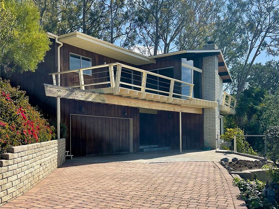 Welcome to this beautiful custom estate in the hilltops of North Laguna Beach. This mid-century style home features the most stunning panoramic coastline views that you will never want to leave. This home has a total of three stories. The downstairs has its own kitchenette and separate entrance, with three bedrooms on the main floor with direct access from the two car garage. The top floor features the main living space: the living room with floor to ceiling windows maximizing the amazing coastline views, kitchen with access to the coastline facing patio, and office or library. A landscaped yard completes this expansive lot providing you ultimate privacy in your personal paradise.