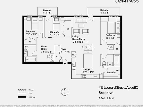 Park views from every room! This unique combination three bedroom residence at the Aqua condominium offers chic, modern finishes, stunning views and endless sunlight. This home has been completely redesigned with new custom finishes which are significantly higher end than the original sponsor finishes. The large eat-in kitchen has a generous amount of cabinet storage as well as with top of the line stainless steel appliances. There are new wide plank hardwood floors throughout. When you desire an escape outside, enjoy not one, but two, of your own private balconies perched overlooking McCarren Park. Comfort and beauty both inside, and out. 415 Leonard is a luxury condominium complex nestled at the border of Williamsburg and Greenpoint. Situated directly on McCarren park, 415 Leonard features a part time doorman, children's playroom, and very large common fully furnished roof deck with common grills for residents' use. There are myriad transportation options, including the L train at Bedford or Metropolitan, and G train at Lorimer or Nassau with an easy transfer to Manhattan.