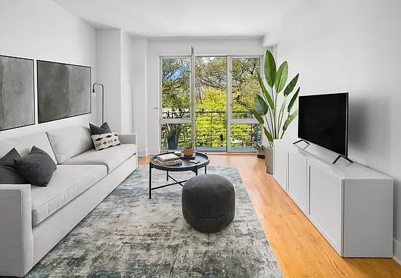 Conveniently located off McCarren Park, in the heart of Williamsburg, this two-bedroom unit with private outdoor space checks all the boxes. From the moment you enter, you're instantly greeted by natural light flooding throughout the home which features eastern and western exposures. The floor-to-ceiling windows in the living room create a perfect picture overlooking the park. The home is approximately 1,058 square feet featuring a park-facing terrace with a view of the Pool at McCarren Park, the Empire State Building, hardwood flooring, and an in-unit Bosch W/D. The chef's kitchen is equipped with a Viking range stove & oven, a Sub-Zero refrigerator, and a Miele dishwasher. The sale of this unit includes an option to purchase a large private storage room (approx. 6'x8'). The Aqua Condominium amenities include a part-time doorman, a grand courtyard with a grill, and bike storage. Conveniently located near McCarren Park's tennis courts, track, ice rink, pool, and dog park. The ideal location in close proximity to Williamsburg's premier restaurants, shops, and boutiques. Only a few blocks to the L & G trains. 421-A tax abatement that does not expire until June 2024. Pets welcome.