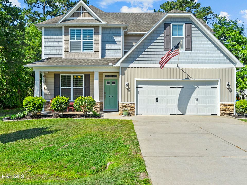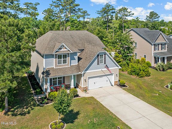 You are going to feel right at home in this Craftsman-style home in Majestic Oaks! Interior features include an open floor plan, upgraded flooring and doors, gas-log fireplace, custom moulding in the formal dining room, and so much more! Granite counters in the kitchen with tile backsplash, stainless steel appliances, and a pantry. The expansive master suite with trey ceiling, large walk-in closet, walk-in shower, and soaking tub! Three additional bedrooms provide plenty of square footage for you to make this space your own. The home sits on a deep 0.48-acre lot with mature trees and plenty of room to roam. In addition to this, Majestic Oaks has great amenities to enjoy - community pool, clubhouse, picnic grounds, and sidewalks!