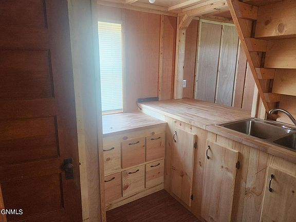 MOTIVATED SELLER. MAKE AN OFFER. ALL OFFERS WILL BE CONSIDERED. Come see this charming, almost tiny home in New Leipzig. This 2014 build was expanded in 2023. On the main floor, there is a living/dining room. The kitchen is next, then unto the laundry with the stacked washer dryer combo, a sink and a fold down table. The toilet is in it's own room. The bathroom has a whirlpool tub and sink. The bedroom has a back up propane heater. The hot water heater is a demand heater. From the dining room go upstairs to a gathering room. The upstairs toilet also has its own room. The bathroom off of the bedroom has a walk in bathtub. The house has a porch on the south side with a great view. The home is well insulated. The windows are new and most have shutters. There is vinyl siding and a new steel roof from 2023. Heat and Ac comes from the 2 mini-spit units. There is an underground 4' wide x 8' long x 4' high storm shelter under the laundry. The 2023 shop is all steel construction with 6'' concrete floor and floor drain. There is 100 amp 220 volt service in the shop. There is a carport on the east side of the shop. There is a 10 x 10 shed for cleaning game in the fully fenced yard. The city is requiring a new curb stop and new sewer line at the buyer's expense. However, The City will allow the water and sewer to be reconnected if certain conditions are met. The seller will not give an allowance for this. The house could be sold separately and moved. It would make a great lake cabin.