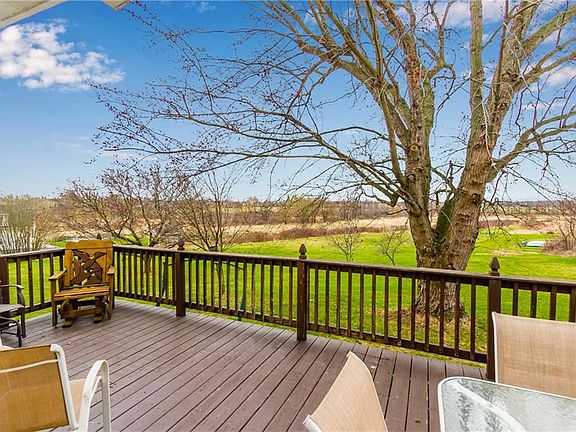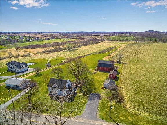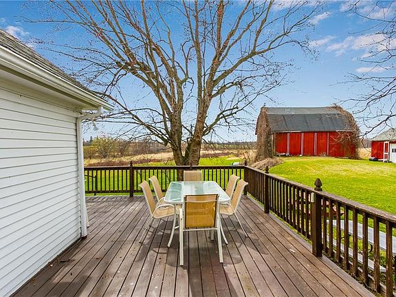 This traditional farmhouse is situated on 5 picturesque acres with a classic big red barn, a two car detached garage and a one car detached garage with additional storage. This is the perfect spot to enjoy countryside views! Upon entering this home you're greeted with a white & bright kitchen with new tile floors with an adjacent laundry room with built-in cubbies and a full bathroom. Open from the kitchen is an entertainment sized dining room with access to the screened in porch and beautiful hardwood floors leading to the spacious living room with a picture window and adjacent office/bedroom! The upstairs features 4 bedrooms and a full bathroom, plus a walk-up attic for great storage or potential bonus room. Enjoy evenings on the wrap around deck watching the sunset over the countryside!