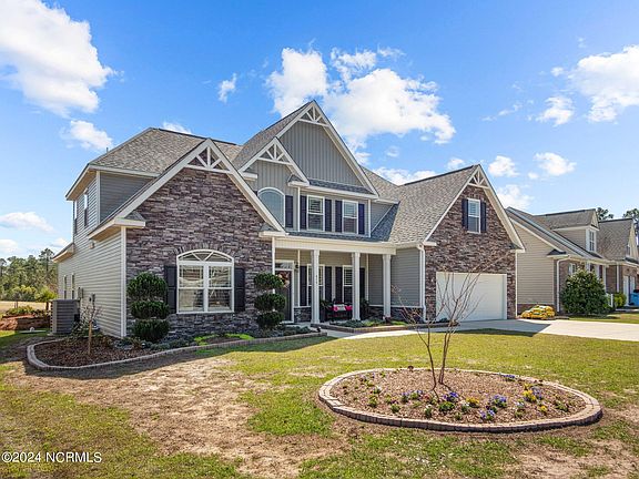 Welcome to Southwest Plantation! Are you looking for an amazing home situated on a golf course?? This stunning home features 5 bedrooms, 3.5 bathrooms and offers breathtaking views of Bear Trail Golf Course. Upon entering this home, you are greeted with vaulted ceilings, archways and an upstairs cat walk that peers down to the first floor. There is a spacious formal living room, a separate dining room with coffered ceilings, and an expansive open family room with a fireplace. Gorgeous kitchen with granite counter tops with grand island, subway tile, numerous cabinets and stainless steel appliances. Off of the kitchen is a charming breakfast nook, perfectly situated with access to the covered back porch! This home also features an amazing first floor master suite! Featuring hard wood flooring, coffered ceilings, a large walk in closet and a luxurious master bathroom suite! Featuring an expanded shower door entry along with a tiled shower with a rainfall shower head in the center, glass door, and dual vanity sinks. The separate bathroom has an expanded doorway that is wheelchair accessible. The second story foyer leads to the additional 4 bedrooms. All bedrooms have hardwood flooring, with carpet only in the foyer and stairs. The exterior of the home features beautiful landscaping in the front, rear and sides, a covered and expanded concrete porch in the rear, to take in the beautiful views of the golf course. Words cannot even begin to describe the extent of the beauty inside and out of this home. This home features many upgrades during construction, to include: expanded 24 foot concrete rear porch, full stone on front of home, double front door, titled shower, grand island, expanded half bath doorway, oil rubbed bronze finishings, floor plugs, flush mount lighting, coffered ceiling in first floor master bedroom, expanded pantry, along with Levolor Plantation Shutters throughout the home! This home is a must see. Mailing address is Maple Hill, NC 28454.