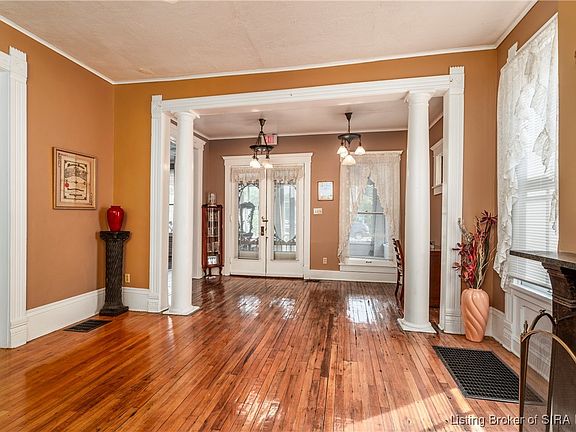COZY UP with the WARMTH, character, charm, flexibilty and possibilities abounding through this 2-4 bdrm home in the Heart of Downtown Jeffersonville. Bring your hopes, dreams, or just your whole multi-generational family to this historic Queen Anne in a hopping, walkable location close to everything! Spring St, Big 4 walking bridge, shopping, errands, 2 minutes from I-65...On main floor, hardwood, fireplaces with original tile, soaring ceilings, French & pocket doors speak to the elegance of another era. Space is ideal for entertaining with large double parlors and formal dining room with NEW paint.Entire attic is an additional, finished living space with 2nd kitchen and full bath. Fenced, private outdoor garden space boasts a Certified Wildlife Habitat, gazebo, water feature, built-in seating and generous storage shed. Half-bath is handicapped-accessible, and there's a wheelchair ramp on the side of home. Updates include new windows upstairs and over sink in main kitchen, 2022; new HVAC, 2021; new downstairs furnace, 2023; updated electric and plumbing systems. The two floors have separate meters and HVAC. Main kitchen fully updated with new floors and granite counters in 2021, but the history lingers as its vintage floor now accents the path upstairs. NO ADD'L RESTRICTIONS due to Century Home designation. Front porch could easily be re-opened. Some potential bedrooms are non-conforming (no-closet) due to age of home. Some replaced fixtures will convey.