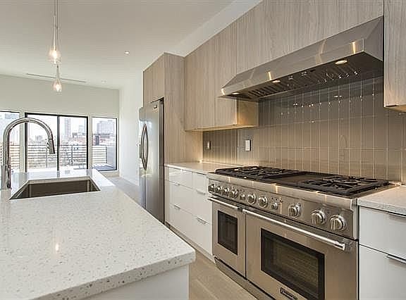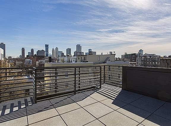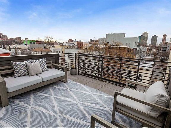 You can have it all in this rarely available three bedroom condo offering over 1400 sqft of gracious living, along with a coveted large private deck, additional roof rights and sweeping skyline and Hudson Yards views! The Modern is a boutique 4 unit building in Downtown Jersey City's sought-after Village Neighborhood. Light fills this top floor unit through expansive windows and skylights. Chefs will love the airy open kitchen too! Gorgeous dual-tone European cabinets compliment terrazzo quartz counters and stainless appliances including a 48'?, 6 burner, Thermador range with dual ovens and griddle, a fully vented hood and sleek glass tiled backsplash with dramatic uplighting. An open living and dining space leads out to your large deck, perfect for al fresco dining. All bedrooms are tucked privately to the rear of the home, including the spacious master suite, with its walk in closet and bath featuring a glass enclosed spa shower, custom detailed medicine cabinet, large dual-sink floating vanity and Lacava polished chrome fixtures. Both additional bedrooms are well sized and can perfectly accommodate a work from home office space. The Modern's newer construction is built with energy efficiency in mind, from its Anderson windows to remote climate controls. In unit laundry, beautiful 7" white oak plank floors and transferable rental parking completes the picture. This is the perfect residence you've been waiting for!