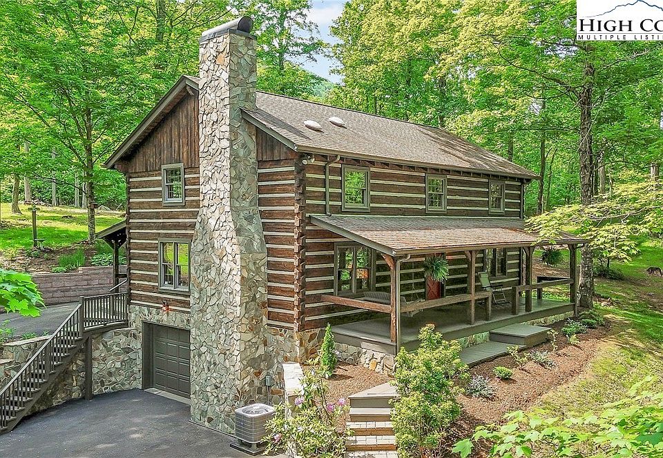 Nestled in the picturesque landscape of desirable West Jefferson, this extraordinary log cabin and expansive 36-acre property offer a truly unique opportunity. Just a brief 3-minute drive from Downtown WJ, this haven boasts endless possibilities with its multiple building sites and development potential, all while enveloped in the tranquility of nature. Crafted with meticulous care, the log cabin itself is a testament to artisanal craftsmanship. Each hemlock log was hand-cut and hewed by the previous owner, who also sourced stone from the property to fashion the majestic fireplace and chimney. Inside, the cabin exudes warmth and charm with its stunning cherry flooring, complemented by cherry tongue-and-groove walls, solid cherry and maple interior doors, and exposed beams. The country kitchen is a delightful fusion of rustic aesthetics and modern conveniences featuring custom-built cabinetry with charming punched tin doors and a Country Charm electric range that harkens back to old-world charm. While the stone fireplace currently offers gas logs, the option for conversion to wood-burning adds to the rustic allure. Step outside onto the covered porches or wrap-around deck, where ample space invites family gatherings and entertaining amidst the serene surroundings. The wooded acreage, thoughtfully laid out with roads for easy exploration by foot or ATV, reveals the property's natural splendor, complete with two small streams and several springs interspersed throughout. Moreover, this idyllic retreat is situated adjacent to 150 acres donated to the Town and limited to park and recreation purposes, ensuring both privacy and access to even more natural beauty. Whether as a full-time residence, a vacation getaway, or a lucrative rental investment, this property promises a lifestyle of tranquility and adventure in equal measure. Don't miss the chance to make this slice of paradise your own.
