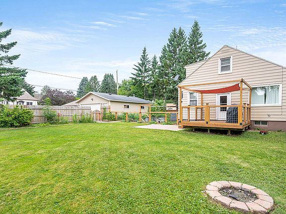This well-maintained home sits on a spacious double corner lot—a rare find in the area—and features a fully fenced backyard with two apple trees, offering plenty of privacy and outdoor space. The yard is ideal for gatherings, yard games, or simply enjoying the outdoors, and it includes a new deck railing and garden fence. A detached oversized two-car garage provides additional storage along with off-street parking for multiple vehicles. Inside, natural light fills the main level, which includes a living room, dining area, kitchen with new butcher block countertops, two bedrooms, and a full bathroom. Upstairs you’ll find two additional bedrooms and a convenient half bath. The lower level offers a finished family room, laundry, and ample storage space. Recent updates include new flooring throughout most of the home, new kitchen appliances (refrigerator, dishwasher, and microwave), and a new high-efficiency heat pump providing both heating and cooling, paired with a natural gas furnace for the winter months. The location offers a neighborhood setting with quick and easy access around the city—just 10 minutes to downtown Duluth, five minutes to the Lake Superior Zoo, and within walking distance to parks, trails, and biking paths. Don’t miss the opportunity to see this move-in ready property with modern updates and plenty of space inside and out.