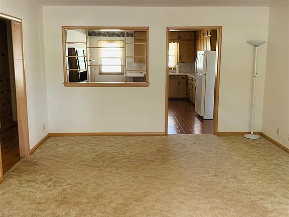 Clean & Ready! Well Maintained! This home features a carpeted living room, large kitchen with utility adjacent near exterior door. The bathroom is situated between the bedrooms. Both bedrooms have hardwood floors, storage above closets and wall storage. It has a second living area off of exterior door under the carport. Exterior door leads to large deck & backyard. Second carport is behind detached garage. A Must See!