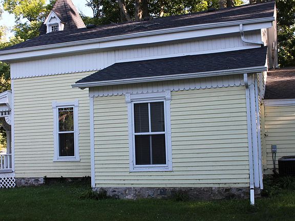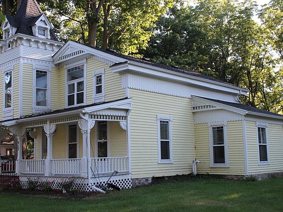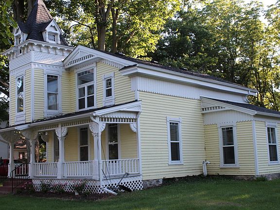Beautiful 1850's home with widows peak.THis home retains its historical exterior. On the inside it has been totally updated. Beautiful kitchen with center island and stainless steel appliances. Carpeting in bedrooms. Wood floors still look like originals. Main floor laundry. Beautiful shaded double lot that goes thru to street behind. Garage is insulated. New roof in April 2015.