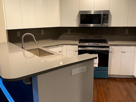 Newly renovated top floor 2BR, 2BA + Office Loft overlooking two story living room that has 17' ceilings. - 2 Reserved Parking Spots in Gated Garage - Kitchen renovation opened it to the living space, all new appliances, updated cabinets, new quartz counter tops, new larger sink - New patio door with dual open sliders and screens - New hardwood floors throughout unit (including bedrooms) - New wood doors throughout - Additional storage area added in unit - Gas fireplace - In unit full size washer and dryer available - Google Fiber installed - Includes large storage closet in front of 2nd reserved parking spot - No smoking - Water included; Tenant pays: Electric, Gas