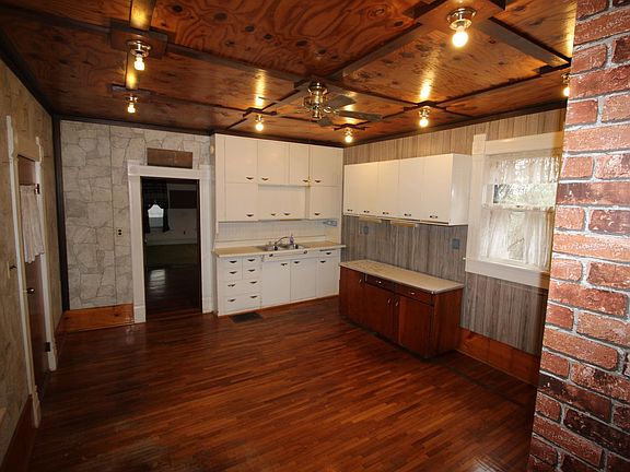 This property offers a large home on a double lot. The interior has had some updates over the years and is currently set up as a duplex. On the main level there are 3 rooms that have space for family living, large kitchen w/ laundry, bathroom and 1 bedroom. There is a large enclosed front porch. The upper level has 2 bedrooms, large entrance with laundry, kitchen and 1 bathroom. The stairway has been blocked off so enter the upper level from the back exterior stairway. The home can easily be converted back to a single-family home. The exterior of the home needs some fixing up. There is a full basement.
