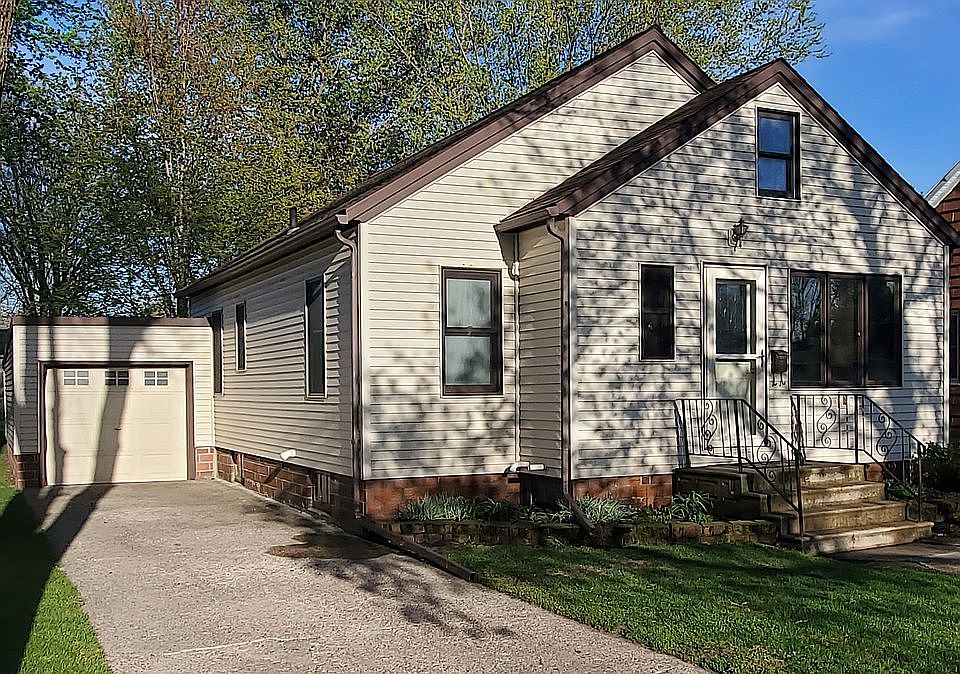Upstairs 433 sq ft main level 812 sq ft basement is finished 762 sq ft. One car garage with a storage shed in back yard. Custom furniture grade high quality cherry wood kitchen cabinets by Big Kraut. inside is cherry wood also. With over sized black stainless steel refrigerator with spacious pull out bottom freezer, black stove and microwave. Duraceramic tiled floor. Custom cherry woodwork throughout. New wiring and lights and outlets added. Bathroom is totally remodeled. Just finished new sheetrock, paint, bathtub/shower, vanity custom black stained hickory wood with onyx top and sink. Delta quality faucets, new toilet and light fixtures. New plank flooring. New wiring and plumbing sewer pipes and water pipes are all new in house. refinished living room wood strip floor by the joinery, plank floor bedrooms. Remodeled basement w/new carpet and walls and laundry room. Basement family room is pine woodwork and accent pine ceiling and steps. 2 bedrooms on the main floor, two large bedrooms upstairs. Storage all along both sides of house upstairs. one car garage with a long drive way, shingles and gutters installed in sept 2009, vinyl siding and windows on main floor are approx 10 yrs old in great shape. circuit breakers were just inspected and updated as bathroom and kitchen were done. sump pump, central air, forced air natural gas. comes with washer, dryer, stove, microwave, refrigerator, large tv in basement along with couch , loveseat both have 2 recliners in each. water heater new in 2016, water softener new in 2019. Cement patio in back. Raised flower bed in front. Many perennials including hostas, mini irises, succulents,long grass, variety of lillies, rasberry patch in back.