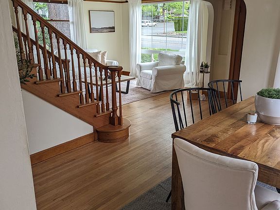 Beautiful 1940 home in downtown Camas! The exterior of the home is getting all new paint and gutters to really shine. Over 2000 SF with hardwoods throughout the home for a period correct classic. Upstairs are 2 BR with full bath, half bath on main. There is a large living area with a fireplace and there is a separate dining area adjacent. The kitchen is next to the dining area and has wall height storage (lots) as as a breakfast nook. The lower has been finished and is great for an office, game room or flex space with additional fireplace as well. 2 car tandem garage with fireplace (not in use) and a fenced backyard for your pet. Pets ok on approval with $25 per mo. per pet, two max. 1 yr lease Tenant is responsible for all utilities and maintenance of the yard. There is a $250 non-refundable processing and admin. fee in addition to the refundable deposit of $2,8000. No smoking in or near the home.