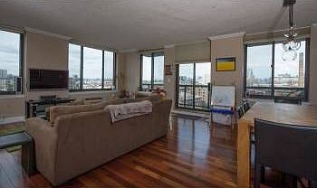 This lovely and spacious 2BR, 2 bath corner home has an exceptional layout, a terrace, NYC views & garage parking. Also features: HWD Floors, on floor laundry facilities, SS appliances, Wall A/C units, guest BR with optional queen size Murphy bed, and is surrounded by windows. All this in a beautiful well maintained elevator building. Can also be rented for $3350 without parking...Available Sept. 1st Credit Checks and realtor fees apply..Call Steve @ 201-240-0389