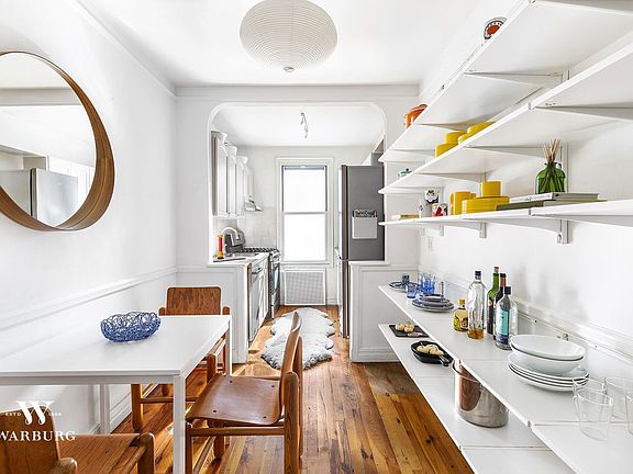 A studio that thinks it's a one bedroom. Upon entering the foyer of this sunny and charming apartment you are greeted by a windowed eat-in kitchen complete with stainless steel appliances. The generously proportioned corner living room has open south and east facing exposures. A queen size sleeping area is handsomely separated from the rest of the space with French doors. Lovely prewar details abound with cove ceiling, hardwood floors, arched details and generous closets. The bath is windowed -- and "city quiet windows" are installed in the living room and kitchen. Apartment 1D is situated steps up from the lobby level in a well-run, pet friendly, elevator coop with live-in Super. 415 Ocean Parkway is an elegant Art Deco building surrounded by a diverse array of restaurants and stores, including The Farm on Adderley, the Purple Yam and the Flatbush Food Coop. The Q and F trains are both within walking distance. Apartment 1D is a uniquely special home offered at an equally compelling price.