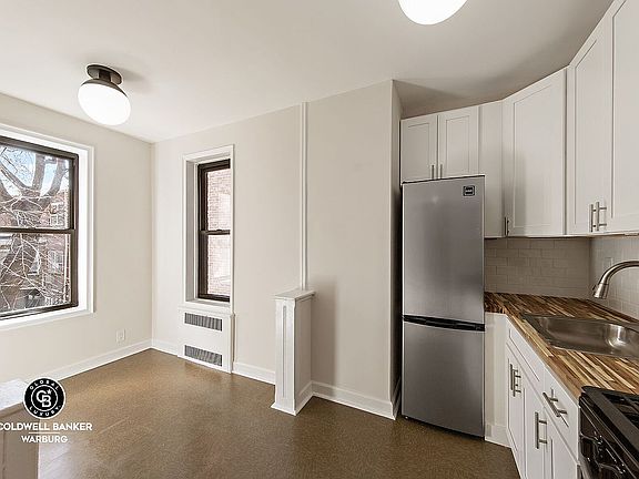 This 878 square foot one-bedroom has just completed a comprehensive renovation. Newly refinished hardwood floors, freshly painted walls, fully refurbished bathroom and a gut renovated eat-in kitchen pair with the original arched doorways, high ceilings and gracious layout fashioned by the building architect in 1900. The generous entrance foyer opens to a sun-blasted, east-facing living room. The brand new kitchen boasts stainless steel appliances, white shaker cabinets, butcher block countertop and two exposures - south and east - with space for a table and chairs. An arched doorway leads to a large and sunny bedroom that easily accommodates a king bed, night tables, bureau - with room for a sitting area or home office. The windowed bath has undergone a total makeover - new vanity, toilet, reglazed tub and all new tiling.