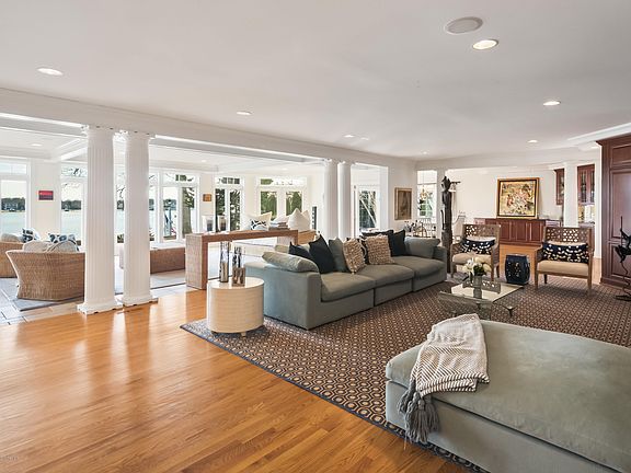 This custom Manasquan Riverfront home sits proudly on over a half an acre, is bathed in light and reflects the unparalleled panorama of the intoxicating river views. The clarity of style and flow of the home accentuates the acceptance of Mother Nature's setting. From the grand great room with a wall of paneled mahogany built-ins and fireplace, the oversized chef's delight kitchen, master suite, additional loft area and large terrace overlooking the river, this home is not to be missed. Over 160' L shaped dock w/ boat lift and ample beach area.
