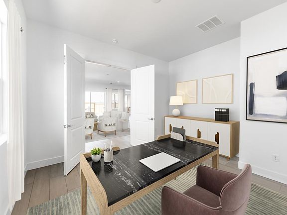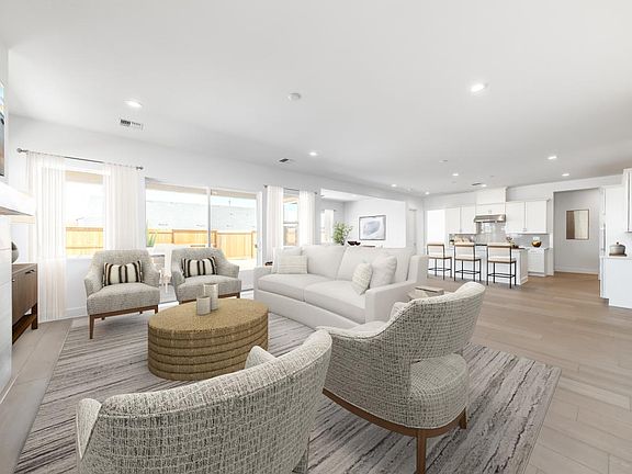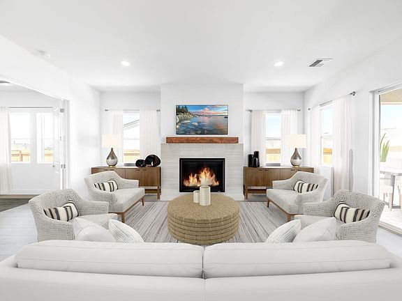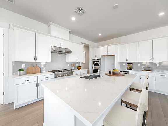 This beautifully designed residence features elegant white cabinets, sleek quartz countertops, and upgraded KitchenAid appliances in the kitchen. Durable luxury vinyl plank flooring runs throughout the main living areas with upgraded carpet in the bedrooms. The home includes a flex room and additional office space, plus an oversized laundry room with cabinets for folding and storage. Enjoy the convenience of a spacious 4-car garage and the comfort of a covered patio, perfect for outdoor entertaining. Disclaimer: Photos are images only and should not be relied upon to confirm applicable features.