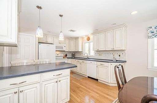 This spacious home offers a formal living room with a gas fire place, dinning room and kitchen combination, three bedrooms including the master bedroom suite, 2.5 baths and an office. Large family room leads to a lovely enclosed porch over looking the beautiful 21,000 + sq ft level corner lot, a two car attached garage and central AC. Updates include: Exterior House painted and Half Bath updated 2016: Water Heater 2014: Kitchen updated 2013: Driveway 2011: Exterior Shingles replaced 2008: Roof replaced 2006: Central AC 2005: Living room and Master Bedroom wood floors installed 2000 & 2002: Master Bedroom, Bath and Porch added 1986: Family Room expanded and two garage added 1982: insulation added during the various renovation projects. Security System alert also includes heat, carbon monoxide, fire, freeze and water. Inclusion/Exclusion list and sellers disclosure attached.