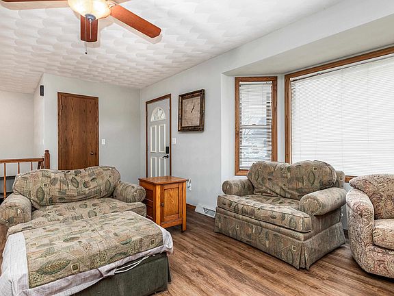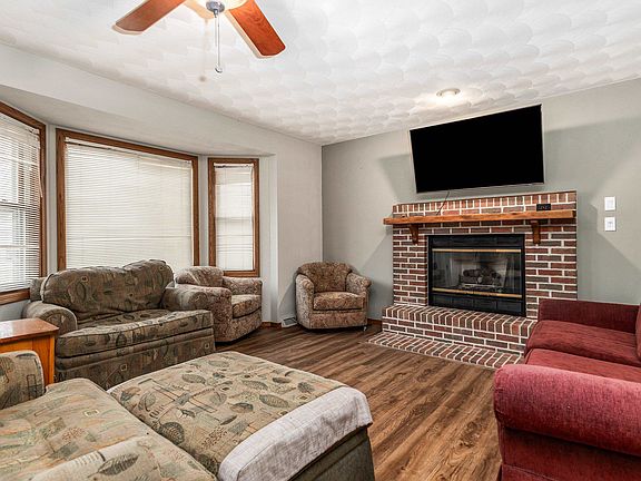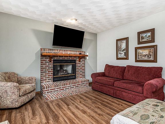 Beautifully maintained ranch home situated on a charming lot. This home features 3 bedrooms, including a spacious master suite with a private bathroom and walk-in closet. With 2 full baths and a half bath, convenience is key. The large living room boasts a cozy fireplace, while the kitchen includes a central island and flows seamlessly into the dining area. Enjoy the inviting 3-season porch (21'7" x 11'9"), perfect for entertaining. The basement offers ample space, including a bathroom and an exercise area. Additional highlights include a two-stall garage, a generously sized yard, and recently updated flooring throughout.
